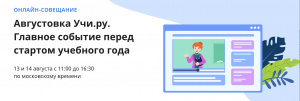 12.08.202013 и 14 августа в режиме онлайн пройдет первое открытое всероссийское совещание-конференция «Августовка Учи.ру. Главное событие перед стартом нового учебного года». На нем выступят представители Учи.ру, НИУ ВШЭ, Российского движения школьников, АНО «Россия — страна возможностей», конкурса «Учитель будущего», мастерской управления «Сенеж», центра цифрового развития «Точка роста», победители всероссийских педагогических конкурсов и многие другие.