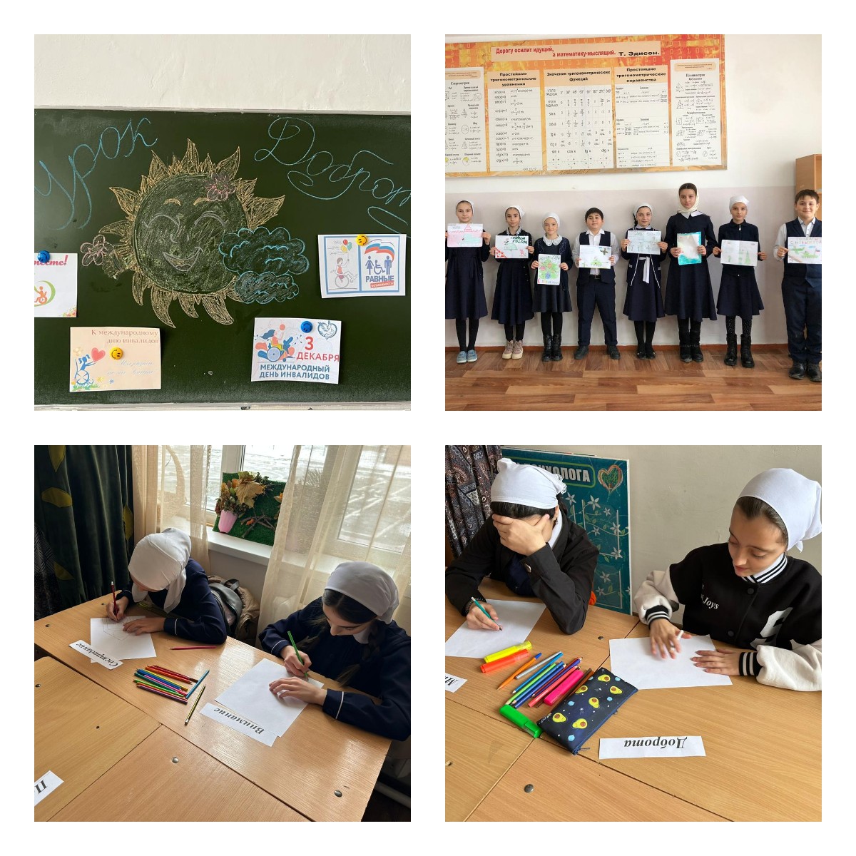 12 декабря с учащимися с 1-8 классов были проведены различные мероприятия, посвященные Урокам Доброты, приуроченные Дню Инвалидов.