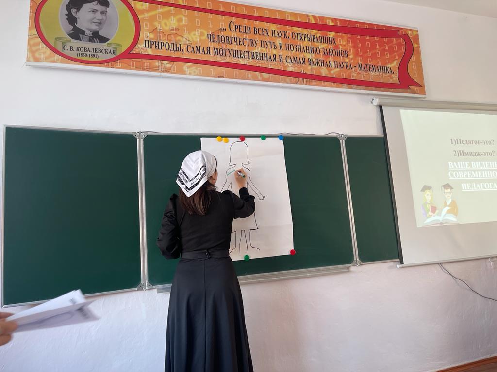 Заира Саид-Селимовна ярко презентовала свой материал. После вступительной части с коллегами был составлен портрет идеального педагога. Заира Саид-Селимовна продемонстрировала для последующего анализа кинофрагменты из культовых советских фильмов и современные картины. Отдельная часть выступления была посвящена тому, как создать персональный имидж и бренд педагога. Каждому педагогу были вручены картины для разрисовки имиджа педагога с графами для дополнительных записей.