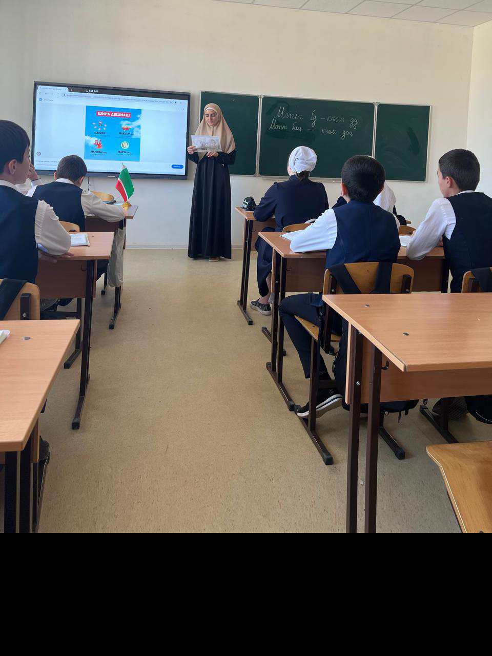 24 апреля 7-8 классов прошла викторина «Ненан мотт, хьо бека бисалахь». 25 апреля состоялось торжественное мероприятие, приуроченное ко Дню чеченского языка. Была подготовлена очень интересная программа с участием обучающихся нашей школы. Это мероприятие забавило всех обучающихся. Они с большим удовольствием приняли участие во всех мероприятиях, продемонстрировали прекрасные знания родного языка, декламировали стихи известных чеченских поэтов о любви к Родине, родному языку, воспевавшие красоту родного края, обычаев и традиций чеченского народа.